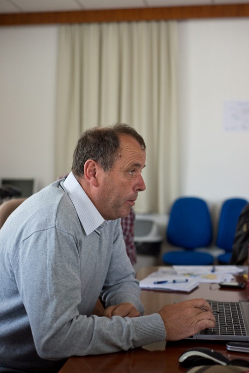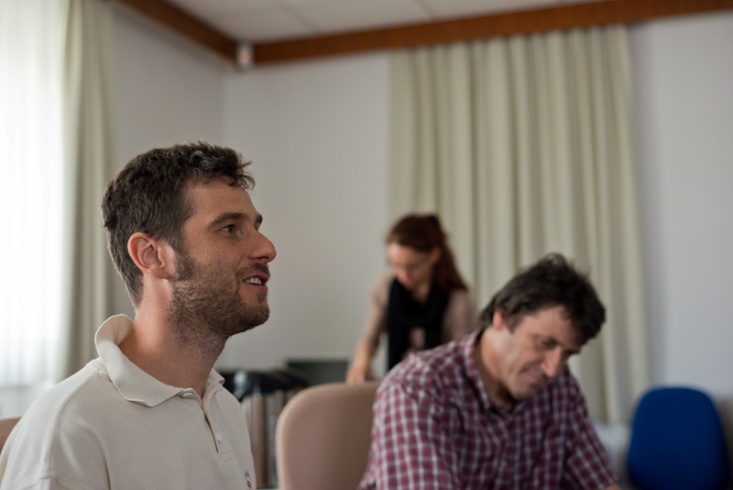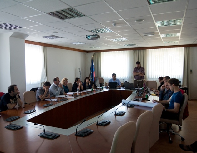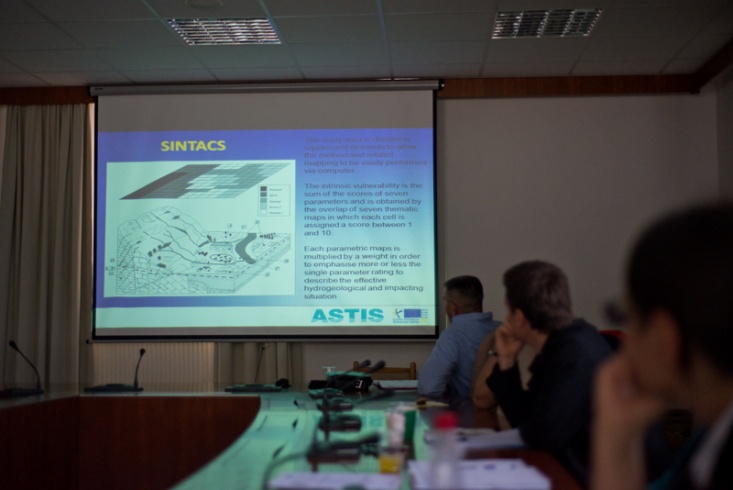 Slika 5. Luca Zini na koncu rednega sestanka kot gost s projekta Astis predstavlja njihove izkušnje pri uporabi metode SINTACS za določanje ranljivosti podzemne vode / Luca Zini na kraju redovnog sastanka kao gost sa projekta Astis predstavlja njihova iskustva kod upotrebe metode SINTACS za određivanje ranjivost podzemne vode (Foto: S. Mozetič).