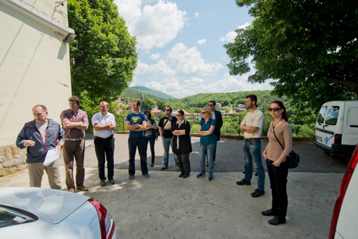 Slika 7. Bogomir Celarc nas je po sestanku vodil in nam predstavil značilne geološko-strukturne razmere na slovenskem zaledju Istre / Poslije sastanka Bogomir Celarc nas je vodio i predstavio karakteristične geološko-strukturne prilike u slovenskom zaleđu Istre (Bogomir Celarc, Joerg Prestor, Janko Urbanc, Miro Mavc, Alenka Koželj, Krešimir Maldini, Erika Batagelj, Nadja Mrmolja, Krešimir Pekaš, Luca Zini, Barbara Simić)  (Foto: S. Mozetč).