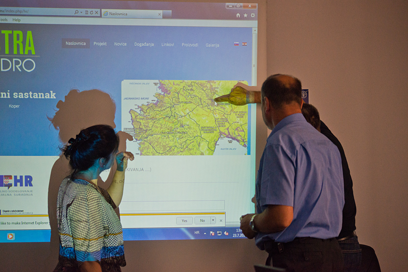 Slika 6. Razprava ob projekciji s spletne strani ISTRA-HIDRO / Rasprava pomoču projekcije internetske stranice projekta ISTRA-HIDRO (Foto: S. Mozetič)